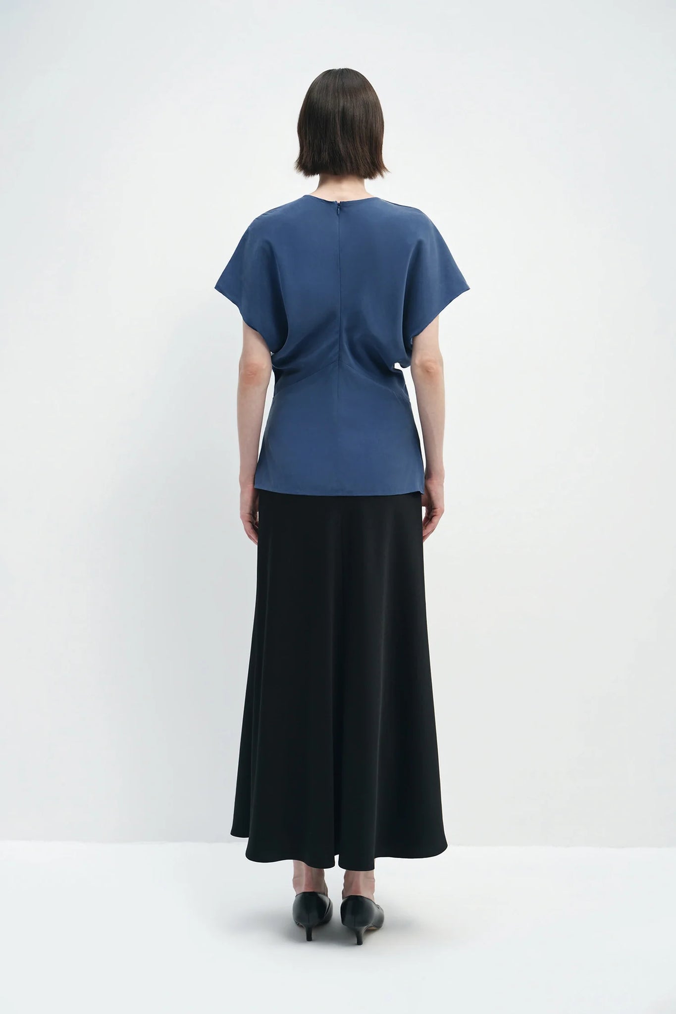 A relaxed top featuring a softly slouched waist and fluid drape, combining comfort with an understated, contemporary silhouette.