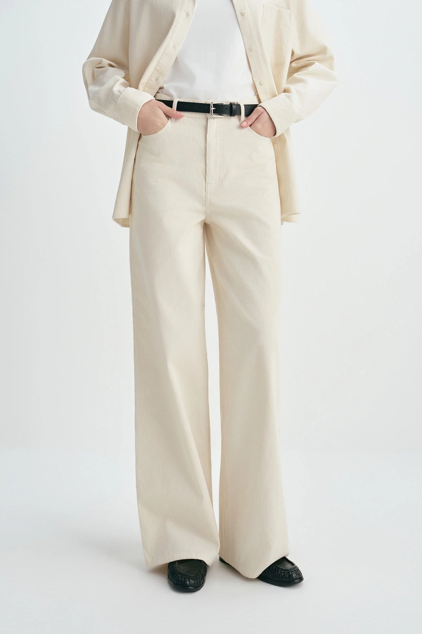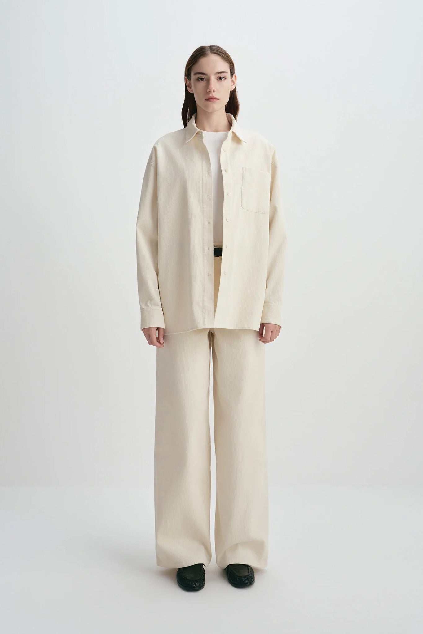 A soft corduroy pant with a classic five-pocket design, balancing texture, structure, and casual refinement in an easy silhouette.