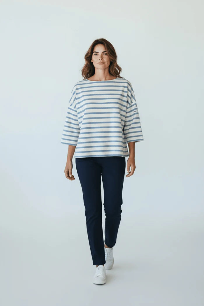 This oversized striped heavy jersey t-shirt, made from 100% organic cotton, combines comfort and casual style. Nautical inspired and a homage to Atlantic coastal living.