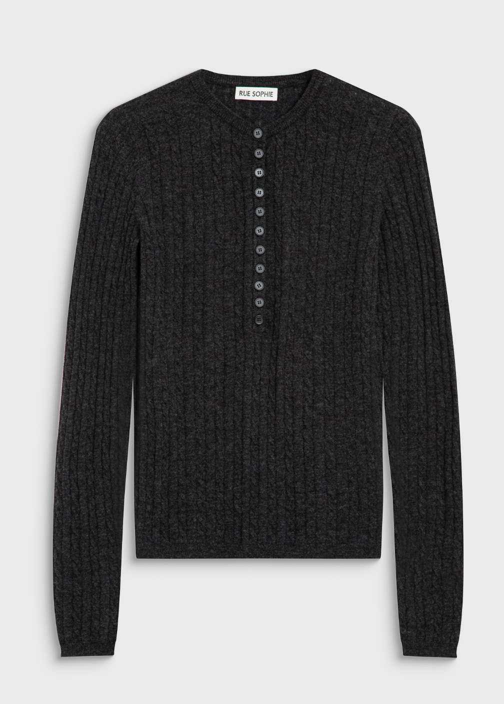 Indulge in the rich warmth of fine knit wool with this cable-knit sweater. Its button-up henley style adds a refined touch to a classic, cozy design.
